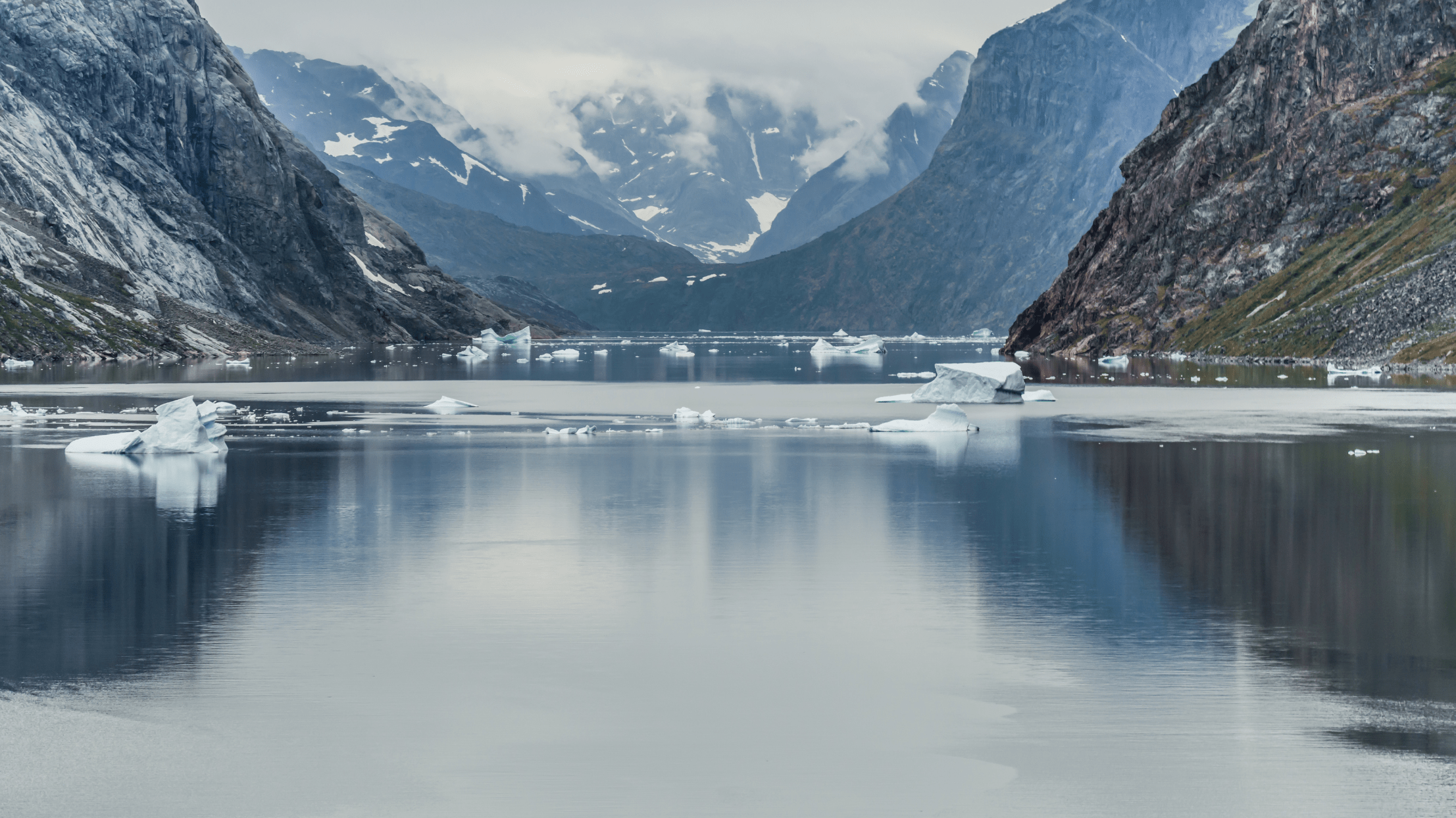 今日沿航法國探險家 Jules de Blosseville 曾探索的海岸線。這片區域至今仍人跡罕至,冰山與懸崖在海霧中若隱若現。