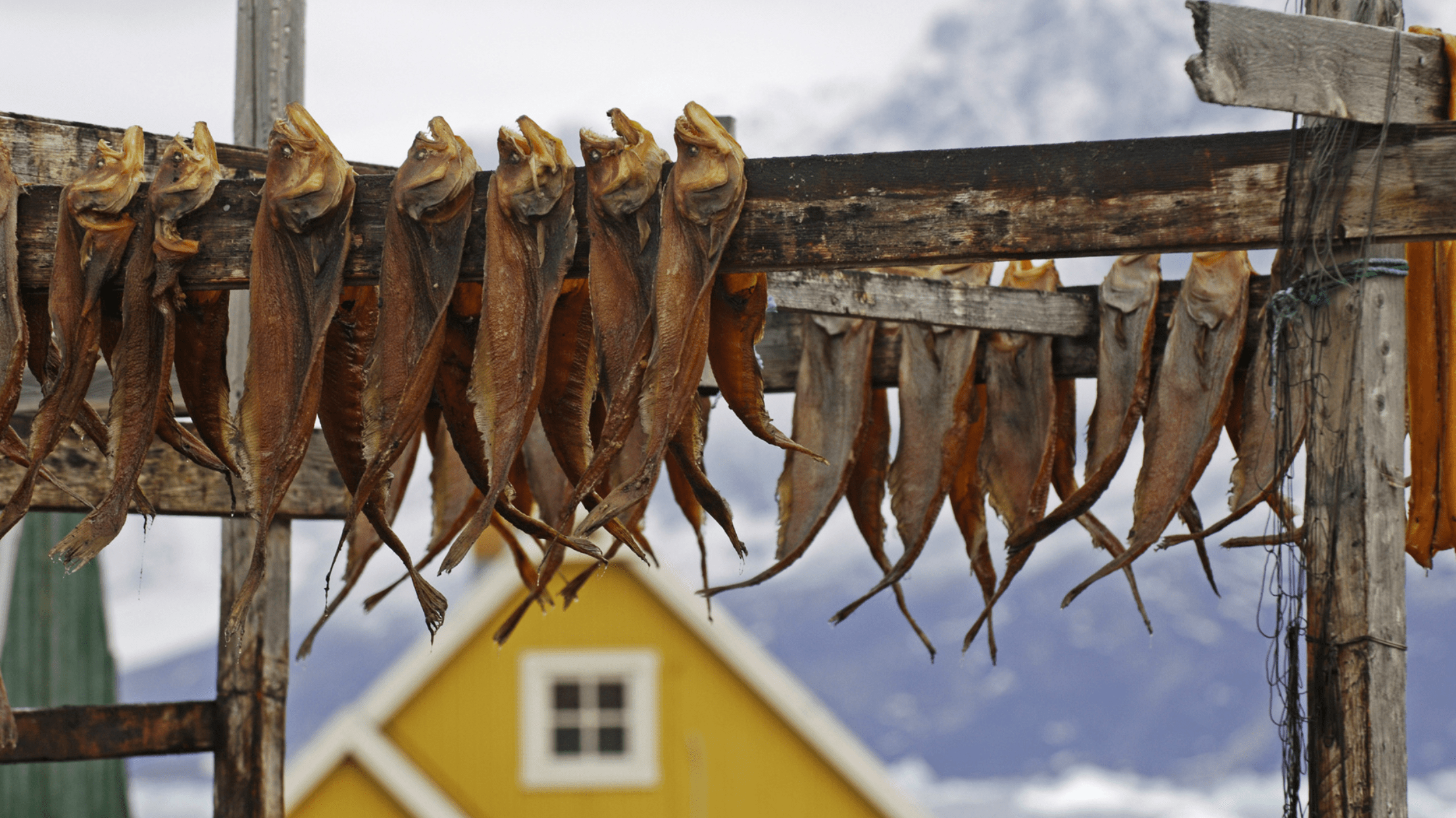 登陸小鎮,拜訪當地因紐特家庭。導覽員講述獵人文化與冬季生活方式,孩子們在雪地奔跑,屋舍前掛著風乾魚與皮革工藝。
