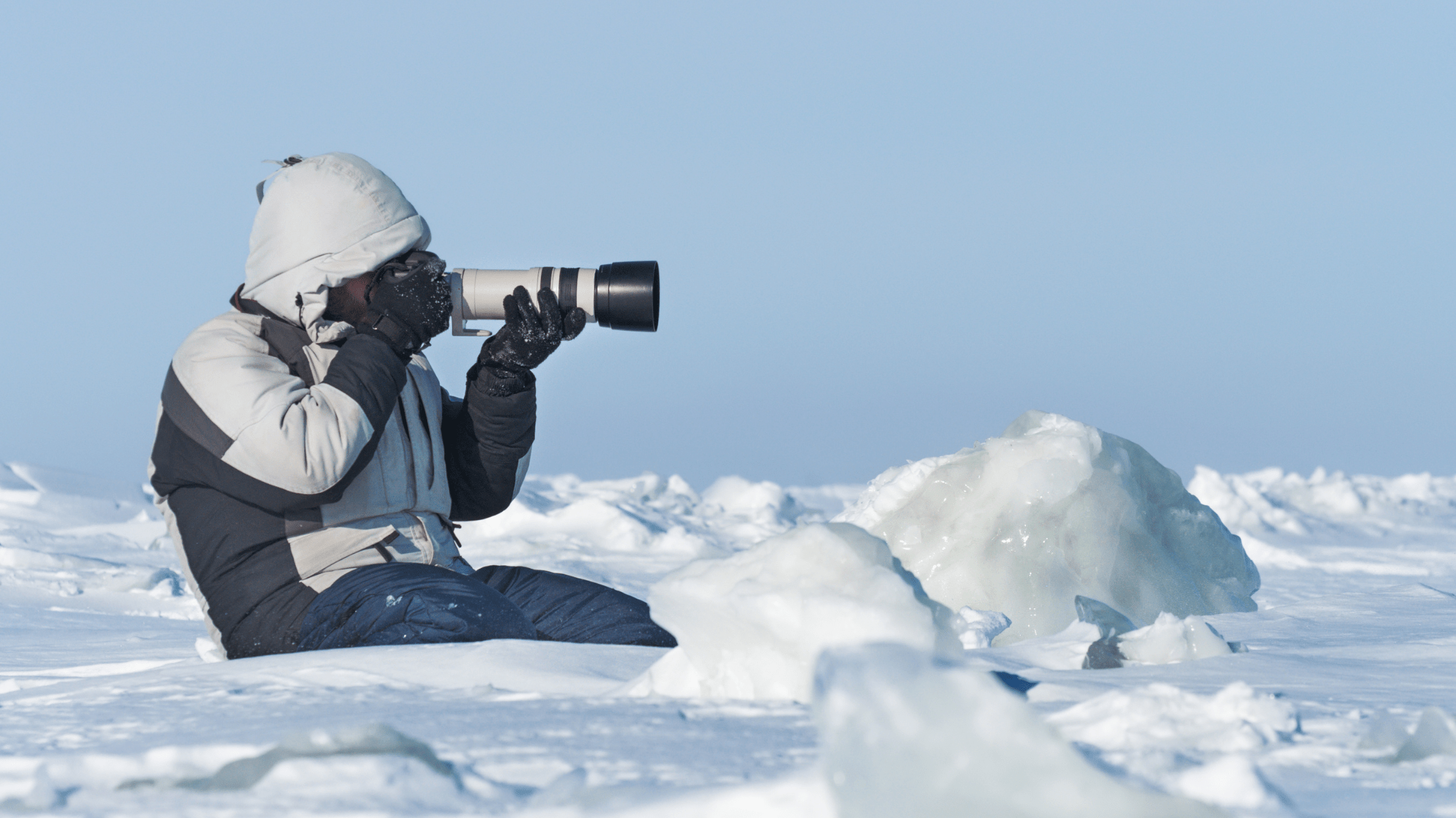 冰山如教堂般矗立,光影流動間,世界只剩純白。