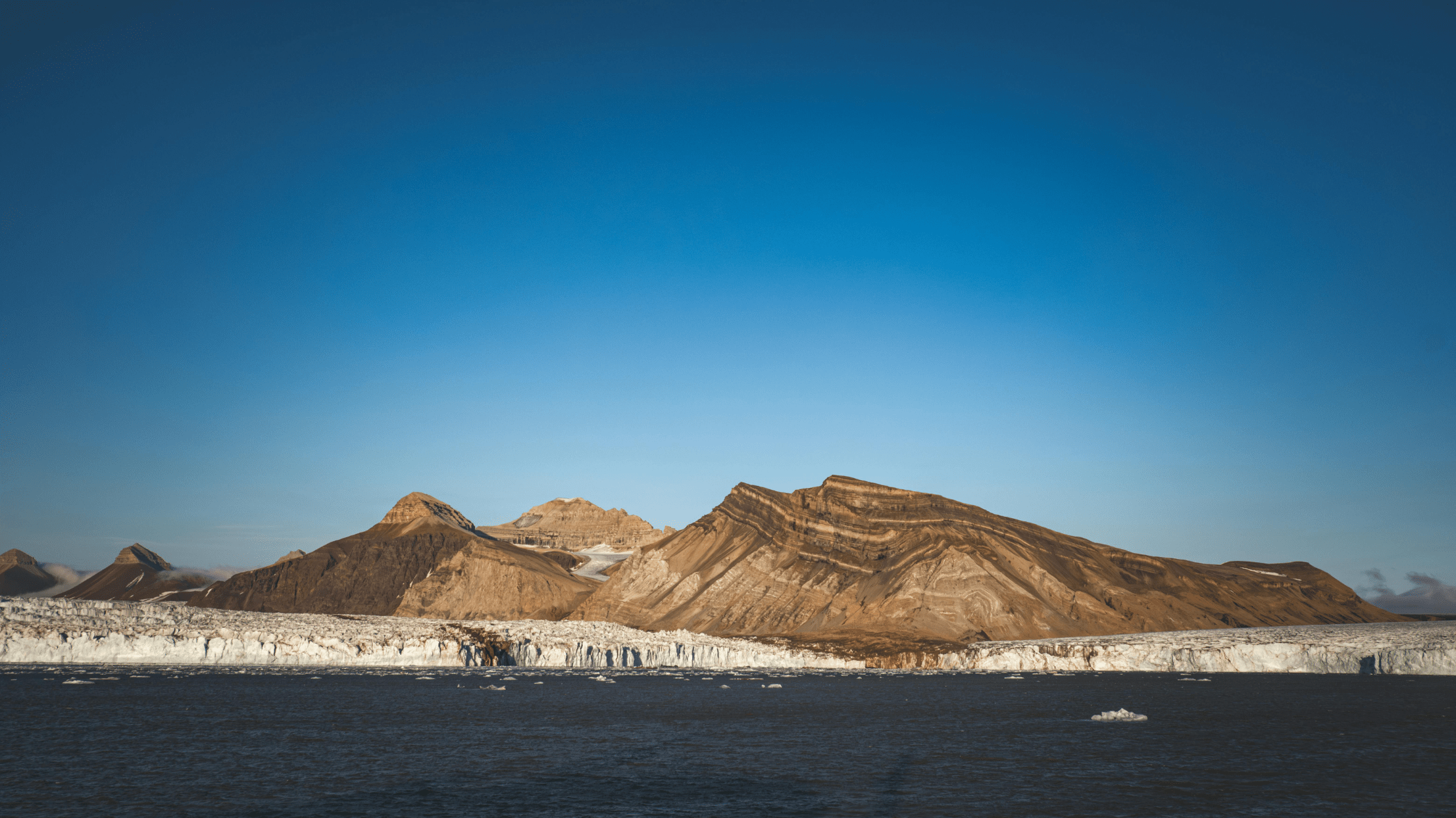 船隻緩慢推進於峽灣水域,近距離觀察冰河前緣、冰壁紋理與碎冰分布。遠征團隊將解說冰河運作方式,以及此類峽灣在北極地貌中的形成角色。