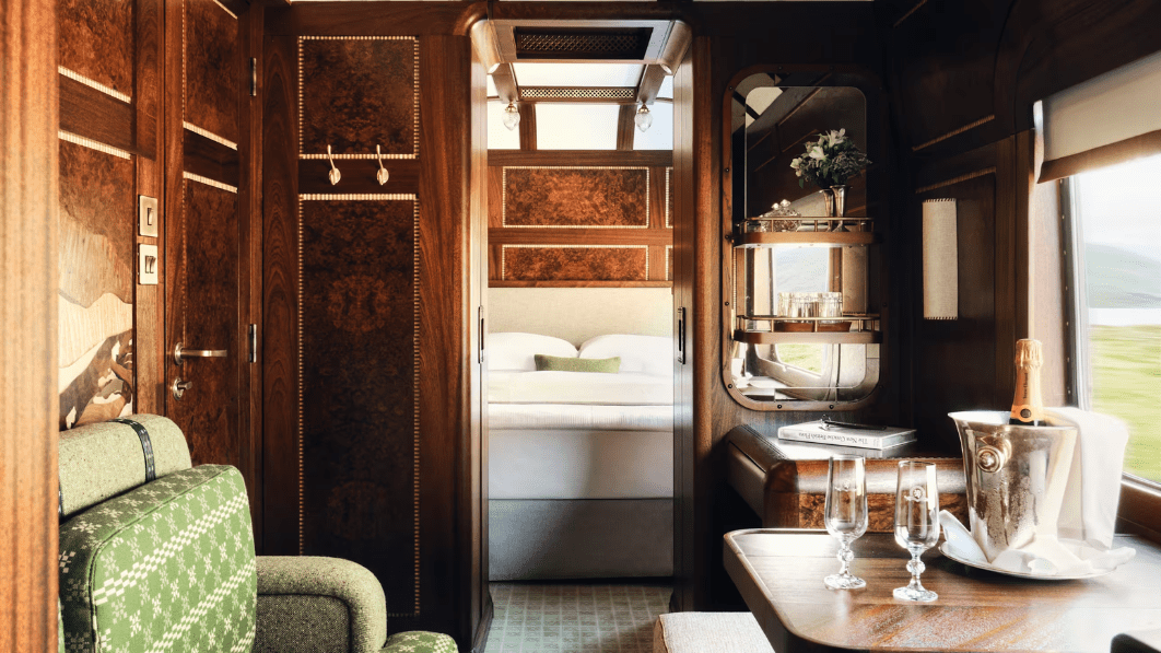 Royal Scotsman 是一列真正以「旅宿」為核心設計的奢華列車,每節臥鋪車廂僅設少量套艙,房間配有木質鑲板牆面、復古黃銅飾件、蘇格蘭格紋織品與獨立衛浴空間,私密靜謐、工藝感十足。列車內特設 Bamford SPA 車廂與 Club Car 餐酒廳,旅人可在行進中享用香檳早餐、閱讀、品酩或與旅伴談天。夜晚返回車廂,窗外是寂靜的湖泊與山脈輪廓,列車緩緩滑過無聲的大地。這不只是一種移動方式,而是一場橫越蘇格蘭、住進風景本身的沉靜儀式。