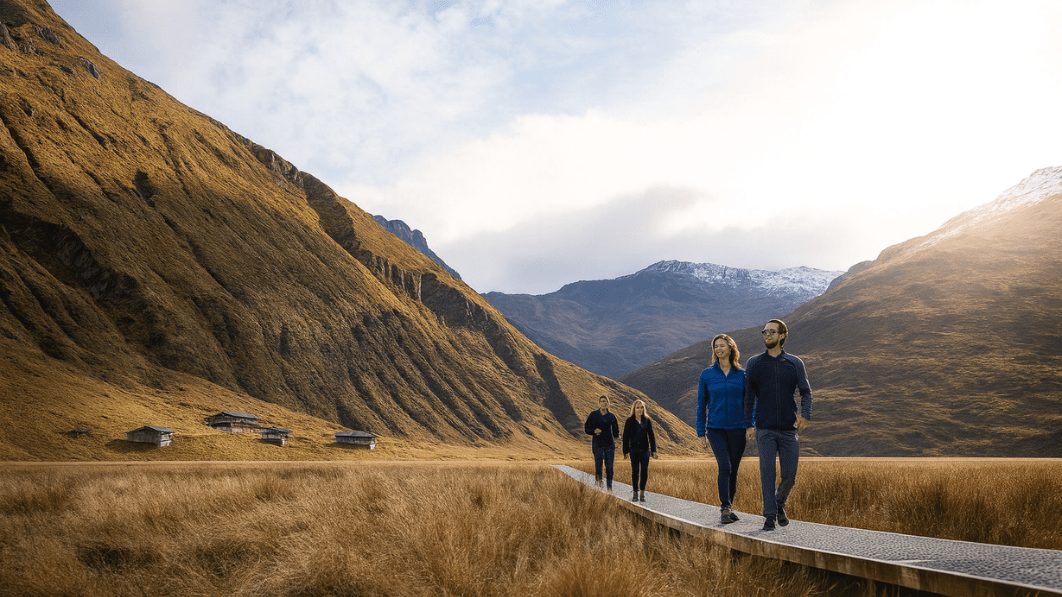 從瓦納卡(Wanaka)出發,搭乘直升機飛越南阿爾卑斯山脈,前往一段私密的高地探索之旅。行程可依個人偏好安排健行、飛釣、自然觀察,或在專業嚮導帶領下進行狩獵體驗。入住 Minaret Station Alpine Lodge,這座隱於山谷中的獵人木屋提供戶外溫水浴池、壁爐與主廚料理,讓人在壯闊與靜謐之間,找到與自然共鳴的節奏。