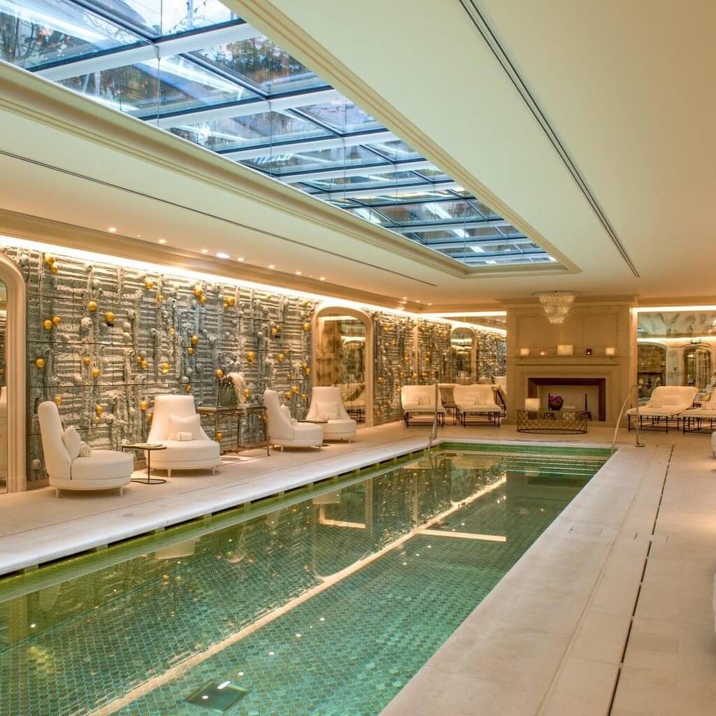 Hotel de Crillon 的游泳池使用了近一萬片金磚,讓入住的貴賓享盡無限的奢華。