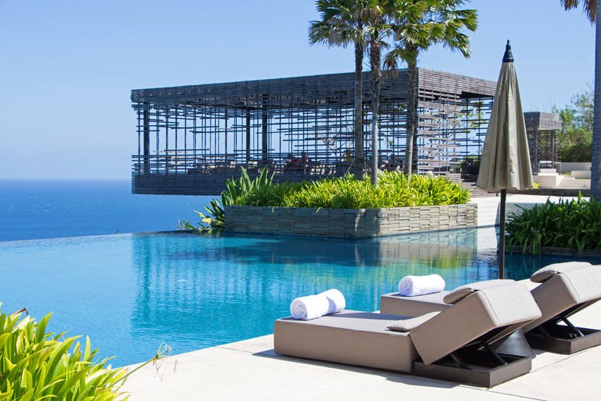Alila Uluwatu 坐落於烏魯瓦圖的懸崖上,擁有凌空壯闊、浪漫的懸崖海景,由新加坡著名建築公司WOHA設計建造,重視環境的可持續性,並運用可回收和當地的材料,巧妙地將現代時尚設計、傳統峇厘島風情和天然環境融合在一起。