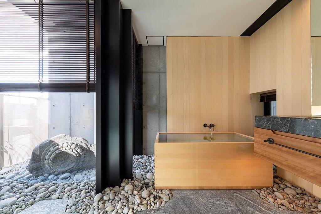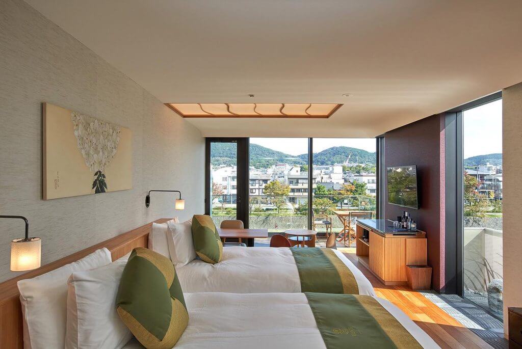 與其說它是間飯店,不如把它稱為一個大豪宅,僅有19間房間,每個房間都能俯瞰到河流、山脈、城市或私人花園。屋頂花園和酒吧更是一個全年可供欣賞全景的絕佳場所。為了向日本文學經典《源氏物語》致敬,每間客房都裝飾有由年輕的京都藝術家以該小說為主題創作的畫作,大堂庭院的浮船禪庭和陽台上的古典繪畫與陶瓷雕塑,都深刻地反映了浮船章節中“生命轉瞬即逝”的侘寂主題。