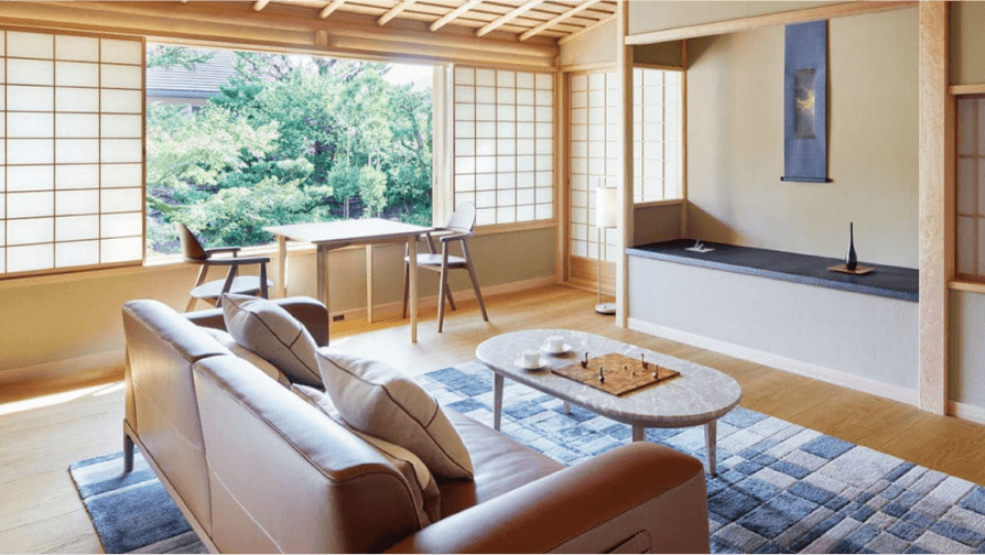 三層樓空間,僅僅規劃四間房,每一間都具獨特設計,在廣闊的宅邸中欣賞京都街景,感受城中山居的安全感和安心感。