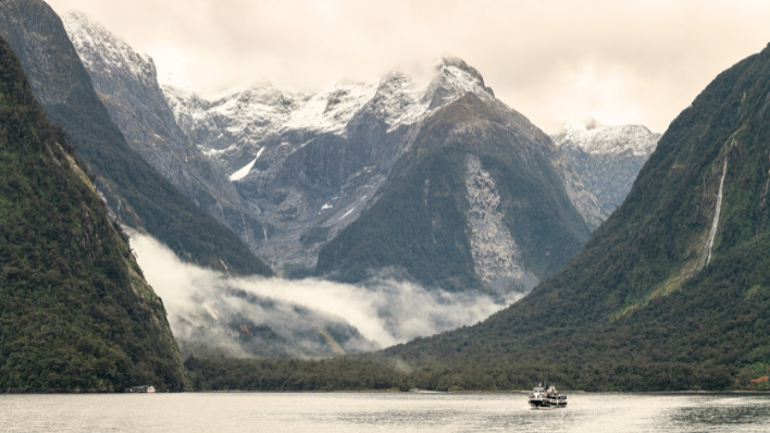 如果世界上有一條路能讓你聽見森林的呼吸,那一定就在米爾福德。這裡的空氣濕潤而純淨,每一步都踏在厚實的苔蘚與古老的蕨類植物之間,彷彿走進了《魔戒》裡的原始森林。這裡的天氣千變萬化,晴天時,湖泊平靜如鏡,倒映著直入雲霄的雪山;雨天時,無數條瀑布從陡峭的山壁傾瀉而下,形成壯觀的萬瀑齊飛景象。那種被大自然完全包圍的孤獨與震撼,是任何語言都難以形容的純粹。